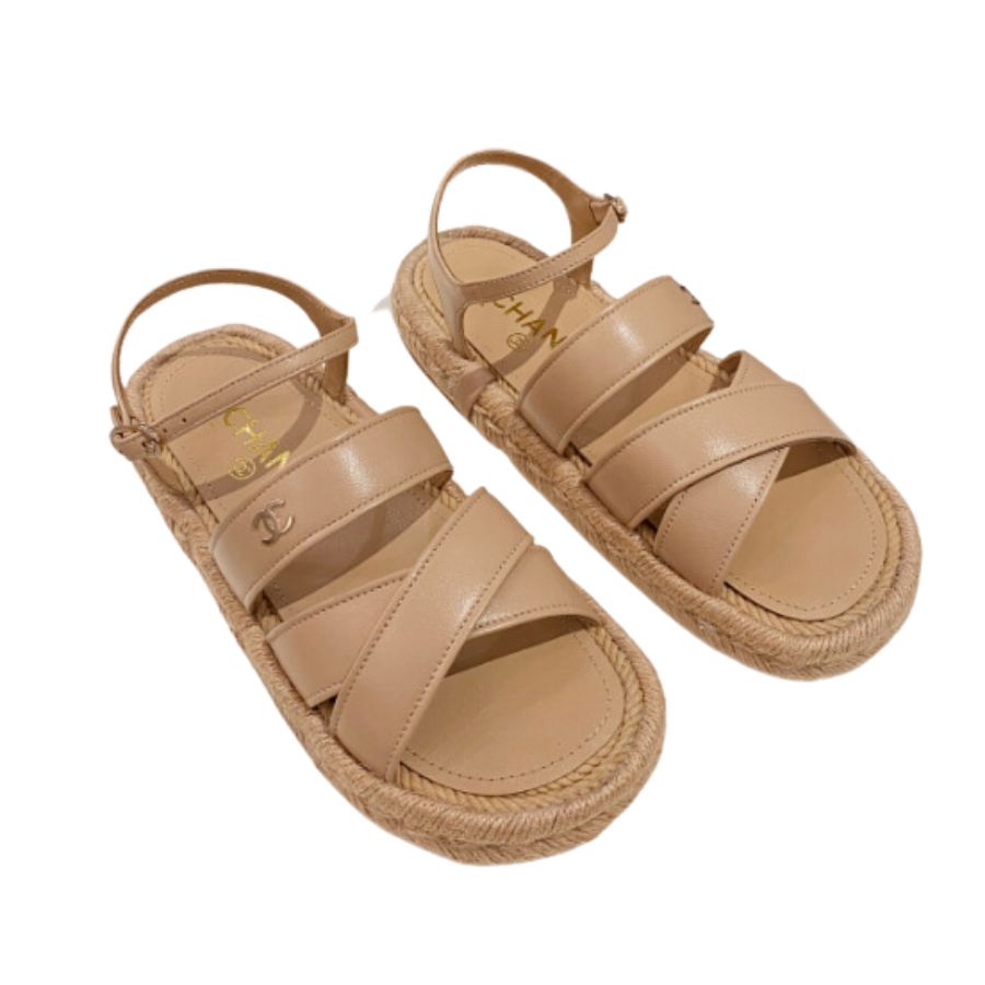 Ch**el Straw Weave Strap Thick Sole Crossbody Brown For Women